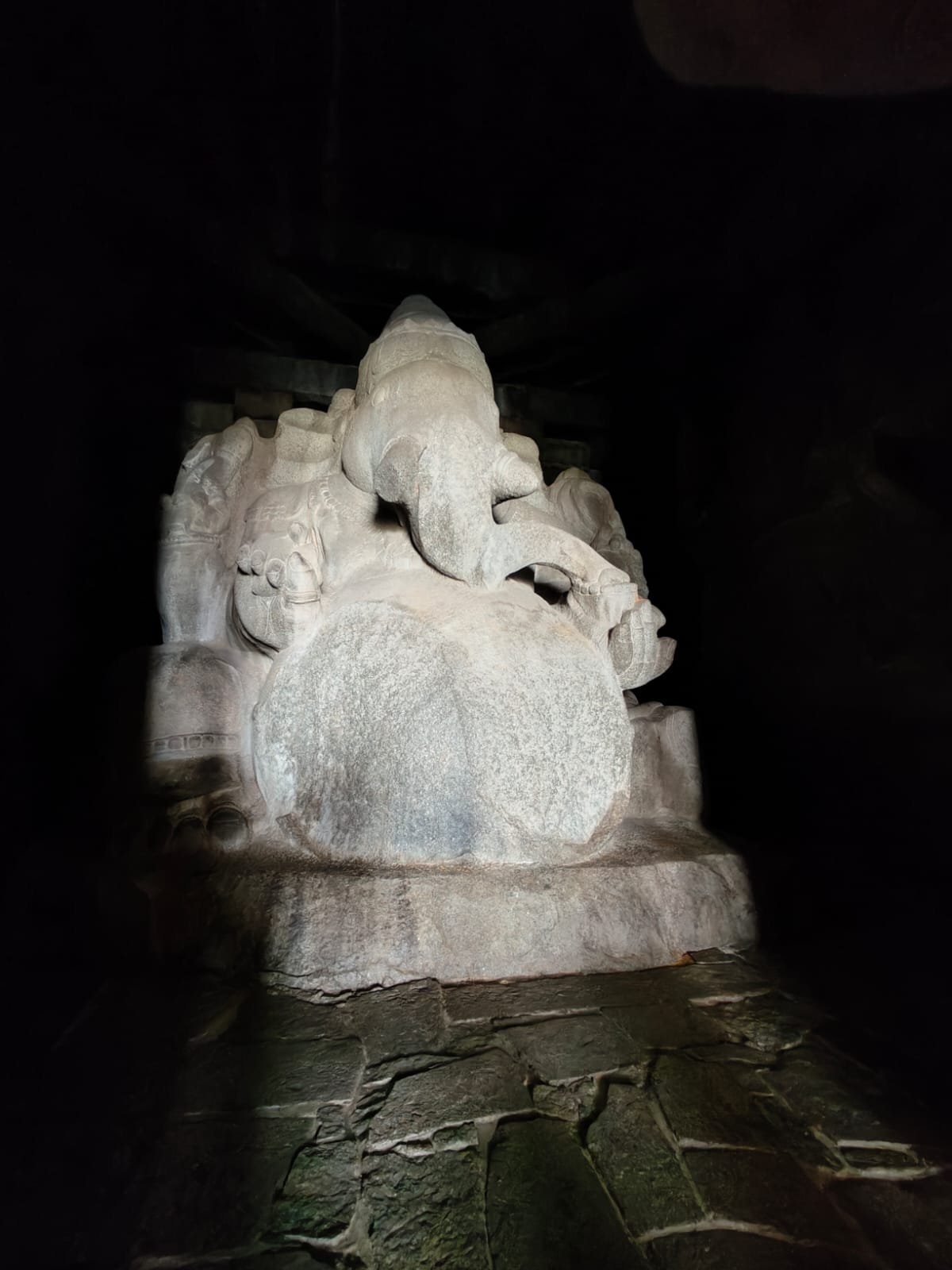 Next, we marveled at the Giant Ganesha and Lord Narasimha statues, both carved from a single stone. Sadly, these statues suffered from the pillaging of invaders, and the Ganesha statue is now without its original head. The craftsmanship of these sculptures left us in awe, reflecting the exquisite skill of the artisans of that era.